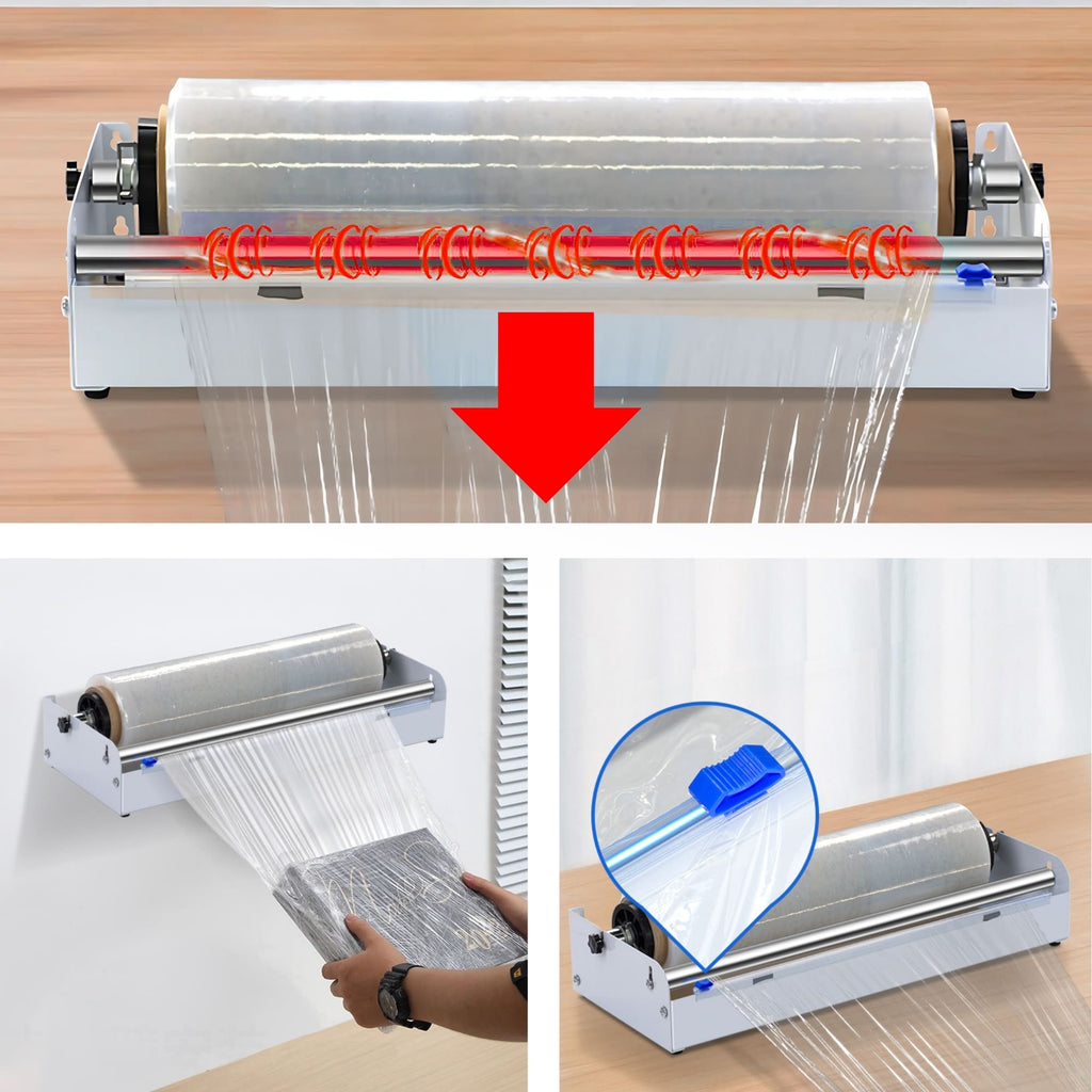 Equipada con una barra de guía, la película plástica se desliza de forma sencilla para envolver con comodidad y eficiencia, mientras que su guillotina plástica deslizante garantiza cortes limpios y rápidos de la película.