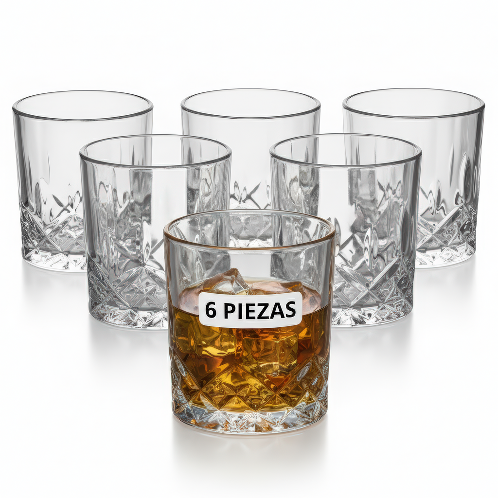VASOS DE VIDRIO WHISKEY ECOMLAB OLD FASHION JUEGO DE 6 Pcs
